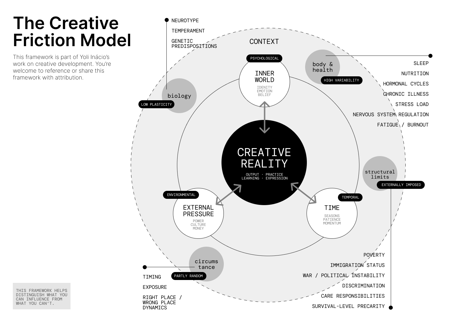 It operates as a system: shaped by what’s happening inside you, around you, and over time. Here’s the model I recently created to make sense of that: